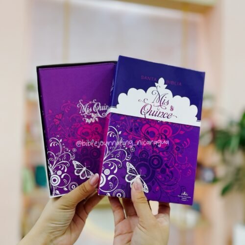 Biblia Reina Valera 1960 Mis Quince, amatista con mariposas, símil piel