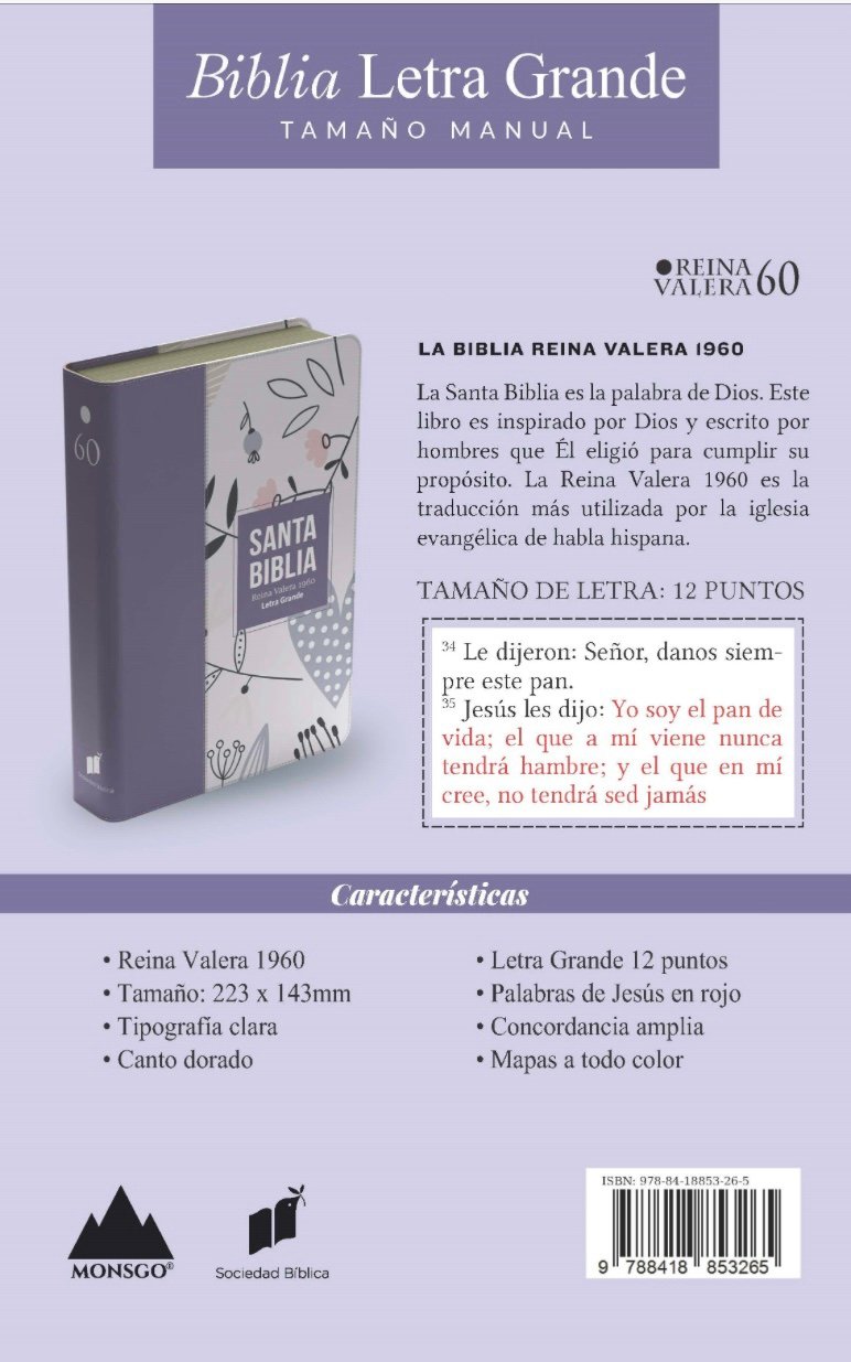 Biblia RVR 1960 – Letra Grande – Tamaño manual – Lila