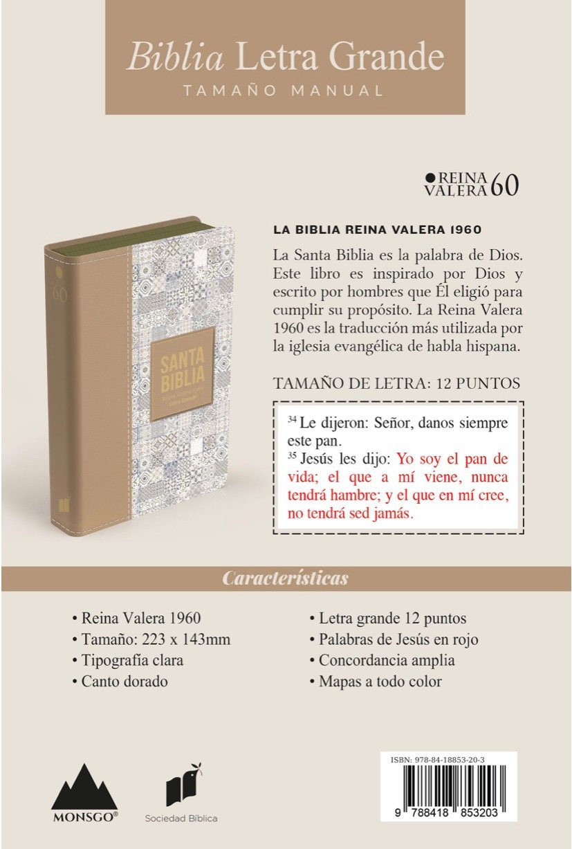 Biblia RVR 1960 Letra Grande – Tamaño manual – Marrón claro