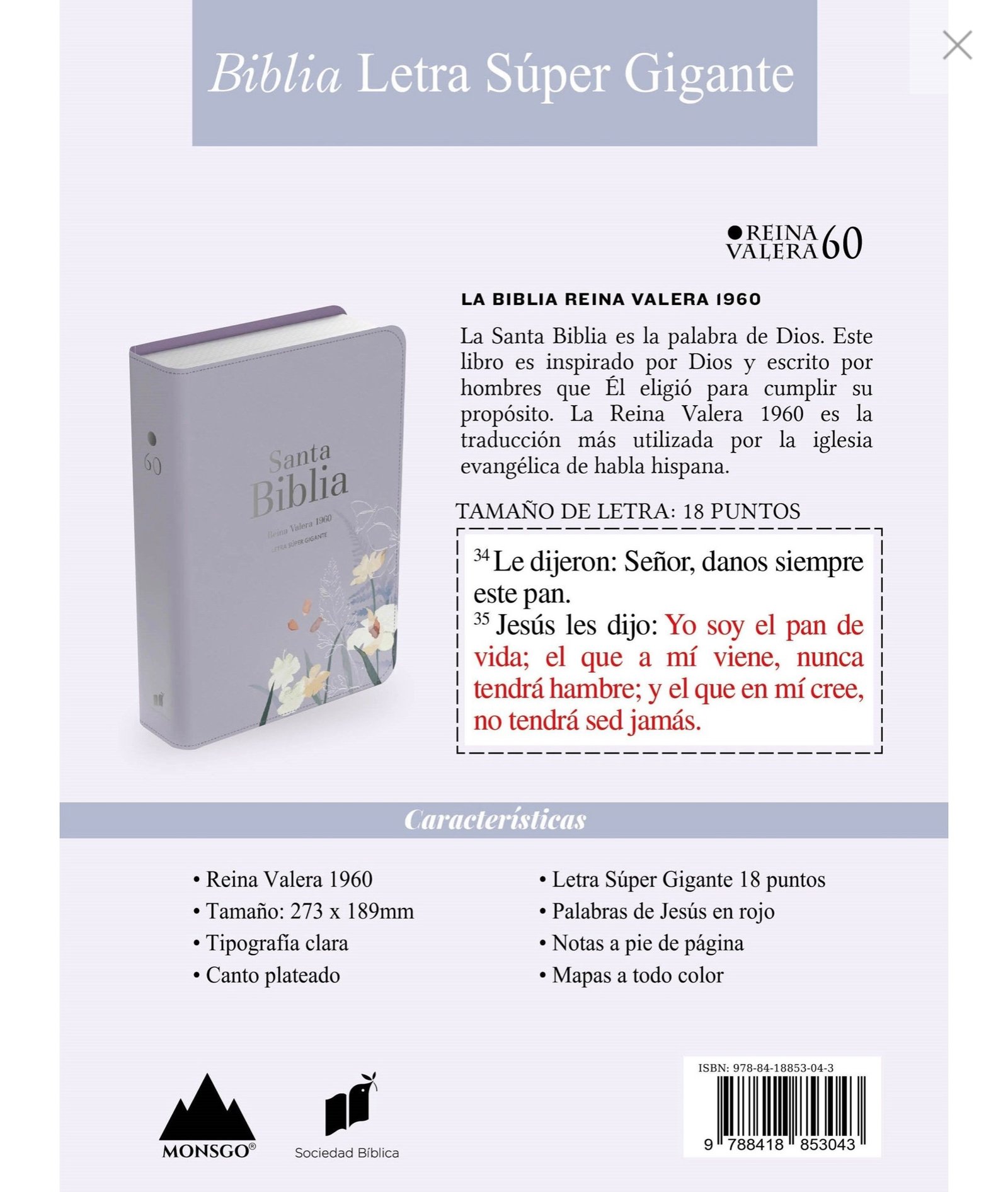 Biblia RVR 1960 – Letra Súper Gigante – Lavanda
